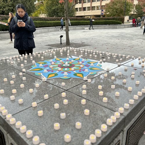 Candles lining the Quad for the Diwali festivities.