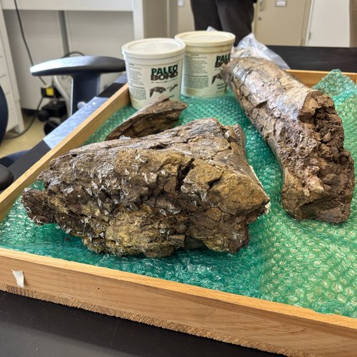 Ivany’s collection includes a recently donated dinosaur limb bone, likely from a hadrosaur.