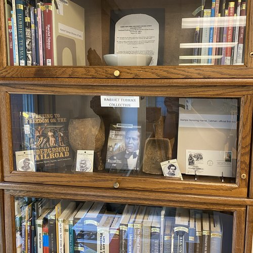 The library’s holdings include books, artifacts and stamps related to Harriet Tubman, the American abolitionist and freedom fighter who later settled in Auburn, New York, and played a key role in the Underground Railroad.