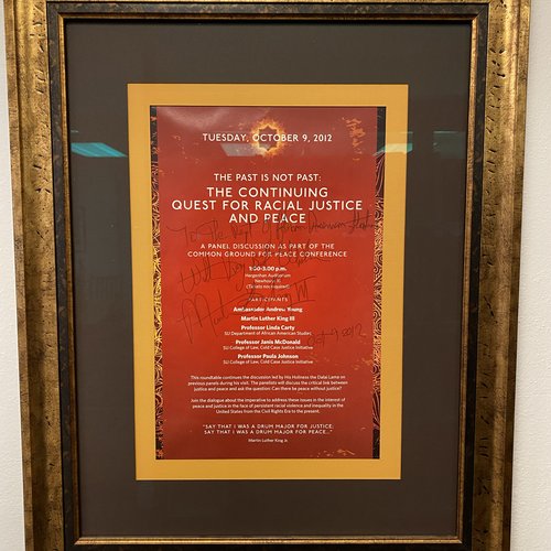 - Some of the library’s most treasured items on display, including a letter from Dr. Martin Luther King Jr. and an autographed poster from a visit by Martin Luther King III to the University and the library.