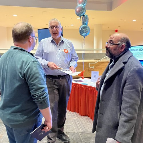 Physics faculty members Denver Whittington and Christian Santangelo talk about the latest developments in the field at the Innovative Technologies pillar with Interim Associate Dean for Creativity, Scholarship and Research Alan Middleton.