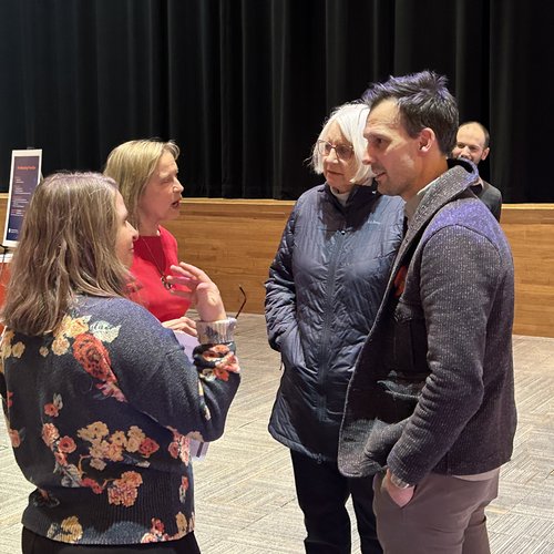 (From left) Sarah Karalunas, Cobb-Jones Endowed Professor and chair of psychology, Gail Bulman, professor and chair of LLL, Lois Agnew, Vice Chancellor and Provost, and Brice Nordquist, Dean’s Professor of Community Engagement, chat during the ASP launch event.