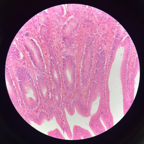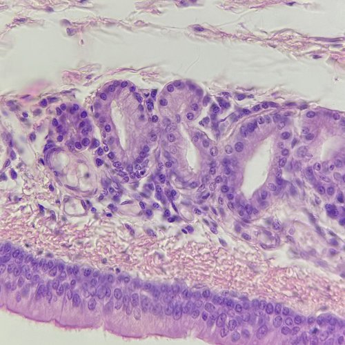 The course also extends beyond at-home and in-person lectures. Lab sections meet weekly, where sessions include exercises such as students examining slides of microscopic tissues using equipment McIlvain says produces images of textbook quality. Students capture their own micrographs of each tissue type, building a personal image library they use throughout the course.