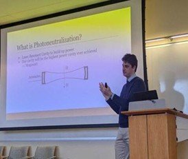 Carter Halpin presenting his work on 1-megawatt laser cavity mode matching.