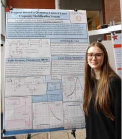 Ella Burr with her research poster on laser frequency stabilization.